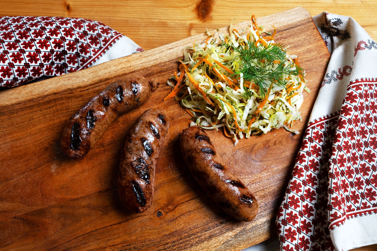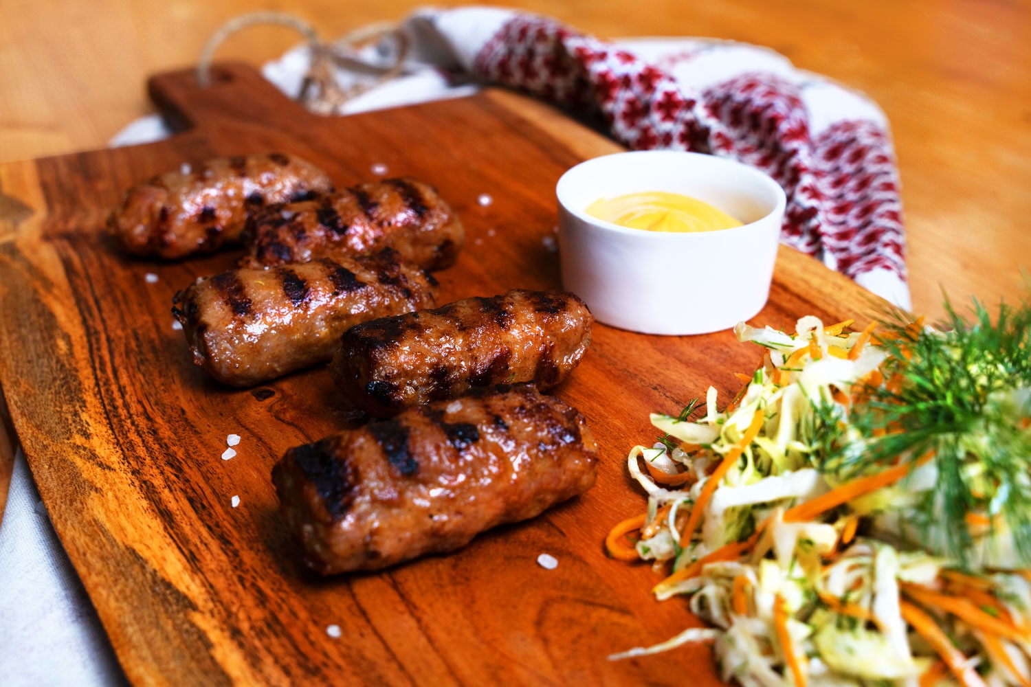 Gustose salamine di maiale e manzo, arricchite con proteine di soia e cotte in olio di girasole. Servite con una fresca insalata di cavolo e verdure croccanti. Un piatto semplice e saporito che unisce tradizione e genuinità.