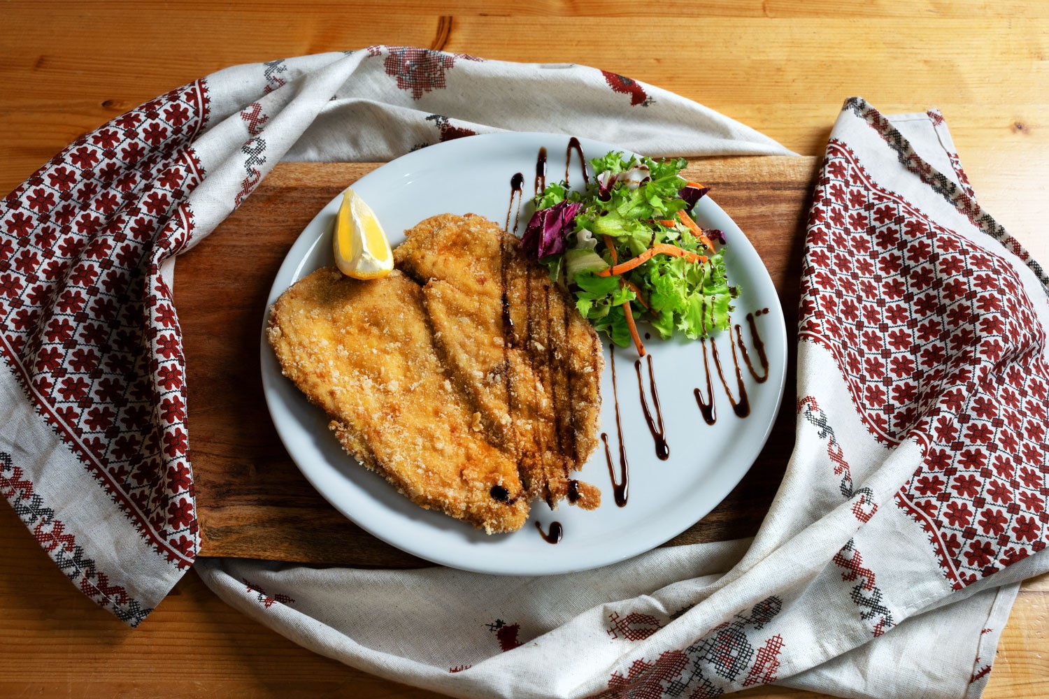 Croccanti cotolette di filetto di pollo, impanate con pangrattato e spezie, e dorate alla perfezione. Servite con patatine fritte croccanti e dorate. Un classico irresistibile che soddisfa ogni appetito.