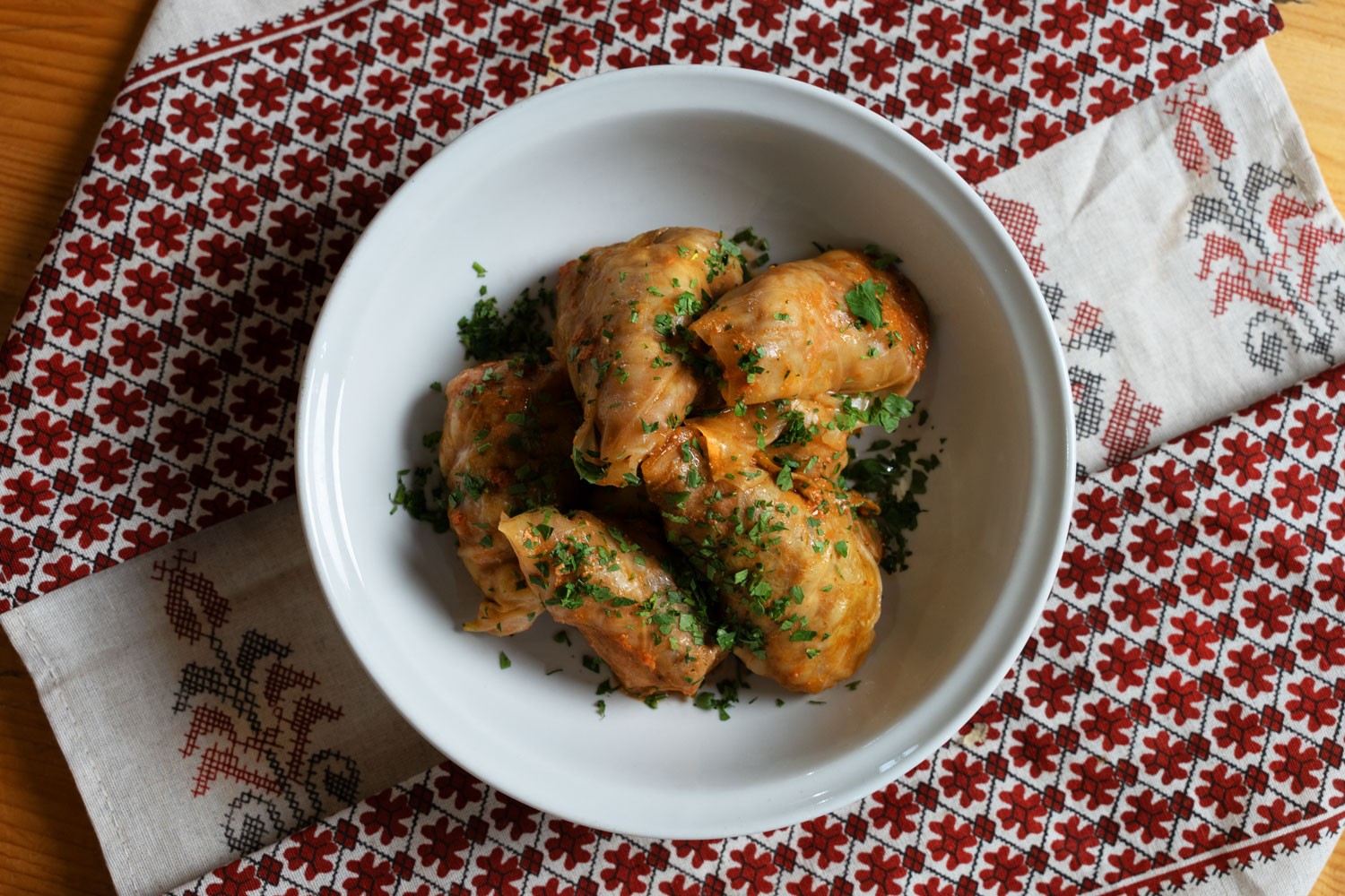 Succulenti involtini di verza ripieni di carne di maiale, cipolla, carota e riso, avvolti in foglie di cavolo. Cotti lentamente in una salsa di pomodoro con peperoni e spezie, e serviti con un tocco di panna.