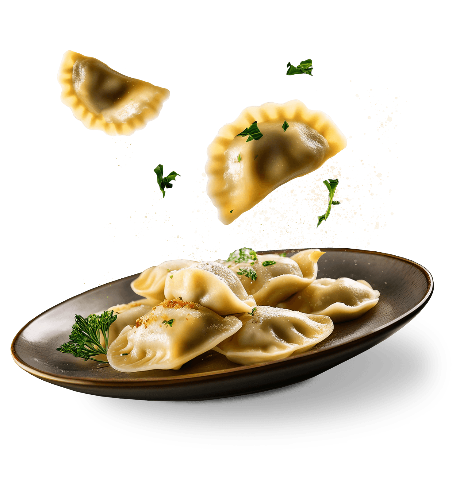 Deliziosi pelmeni artigianali, preparati con farina di frumento, uova fresche e un ripieno saporito di carne di maiale e cipolle. Serviti con burro fuso, panna acida e un tocco di spezie. Un classico della cucina ucraina che conquista al primo assaggio.